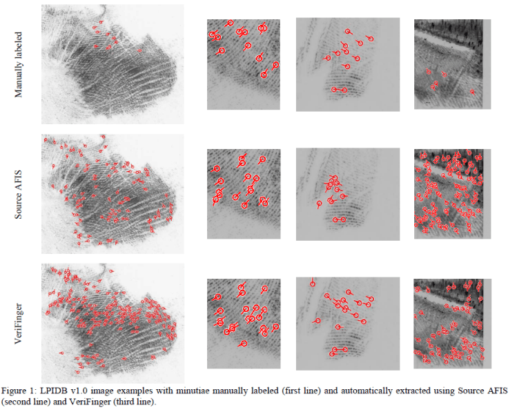 Aythami Morales, Miguel Angel Medina-Perez, Miguel A. Ferrer, Milton Garcia-Borroto, Leopoldo Altamirano Robles, “LPIDB v1.0 – Latent Palmprint Identification Database“, in Proc. of International Joint Conference on Biometrics, Florida, 2014.